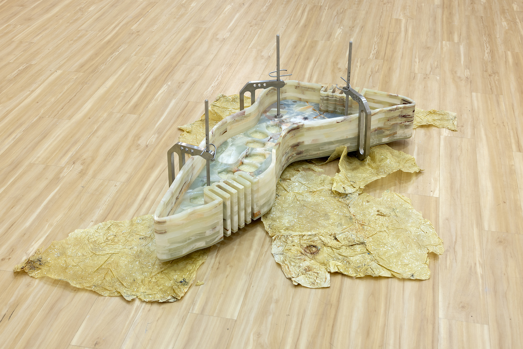 Debugging the Earth asks the viewer to consider the inherent violence of inquiring into both the human-built and natural world with an engineer’s mindset: extraction, dissection and reconstitution. The exhibition surveys artists working at points of compression between deep time, industry, and the corporeal body/body politic; rendering goods and biologics in order to disturb, to reveal and to “penetrate the mist-enveloped regions” of this Earth.