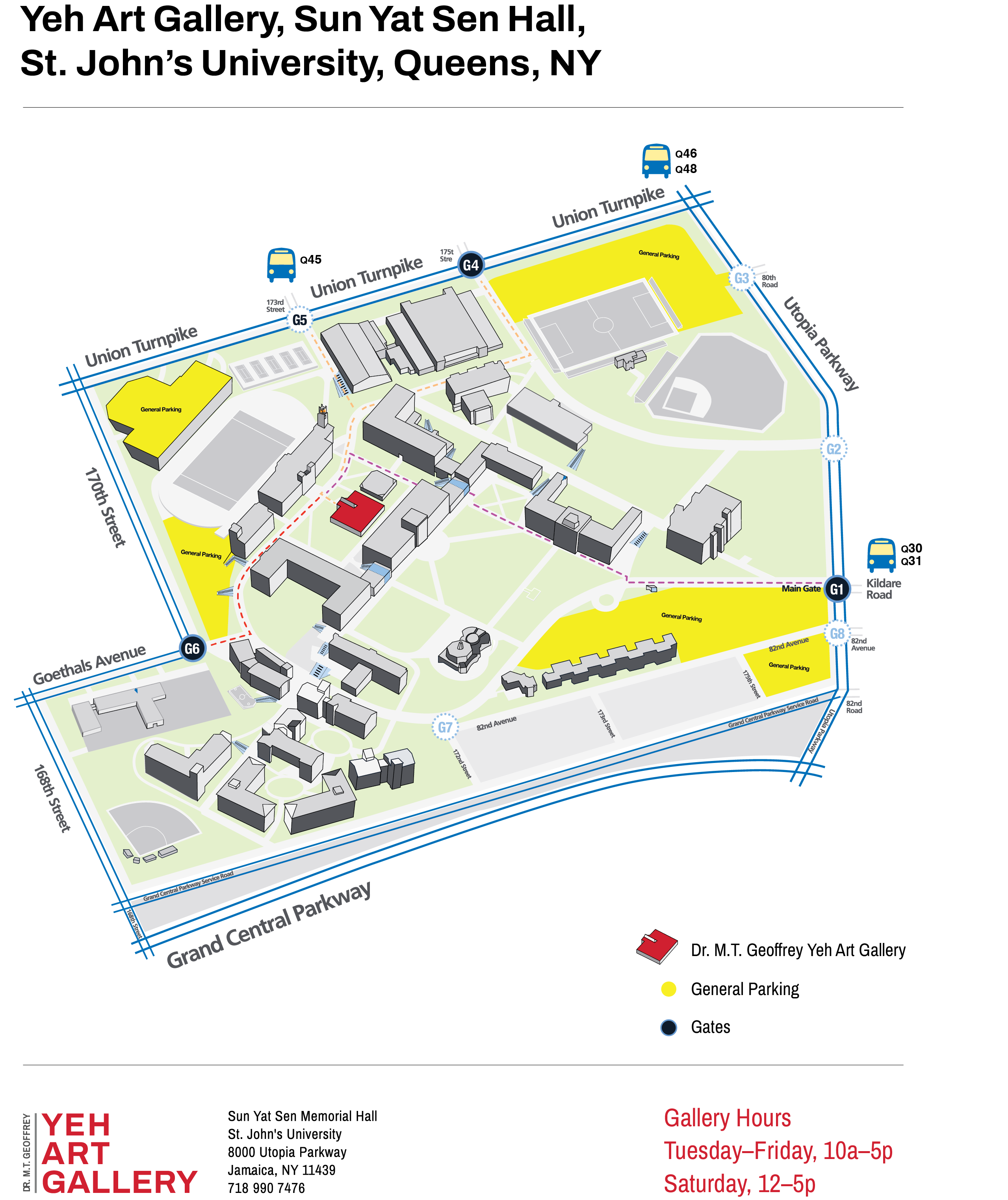 The Yeh Art Gallery has a wheelchair-accessible entrance in the back of the building. Please contact us with questions about accessible parking locations or any other requests at warshm@stjohns.edu